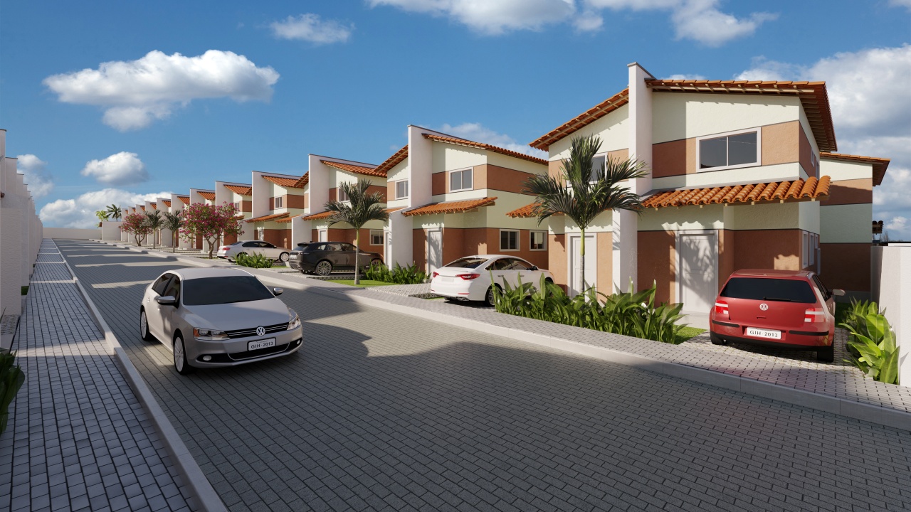 O condomínio possui casas duplex de 2 e 3 quartos e casas térreas acessíveis de 2 quartos.
