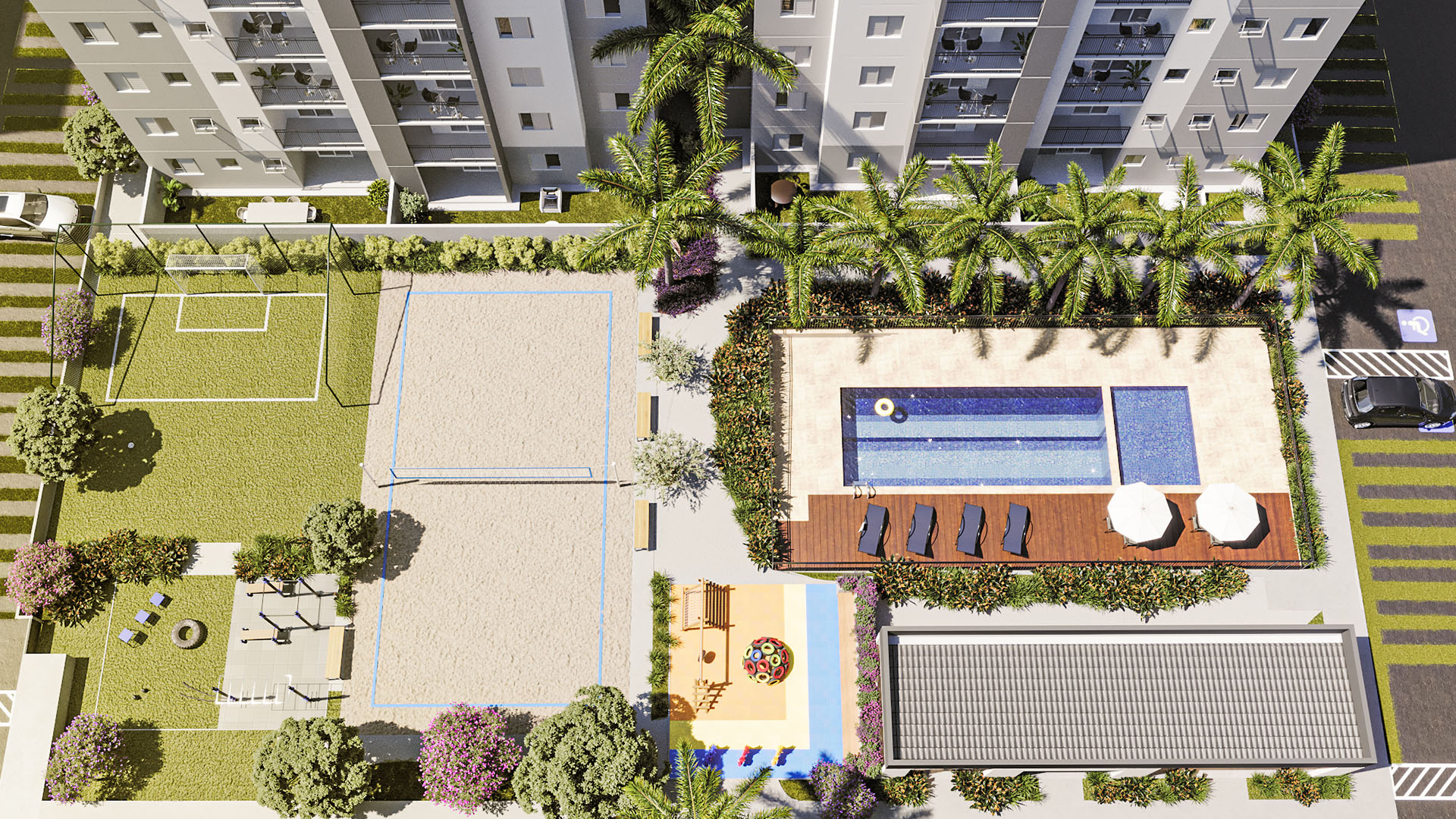 Quando pensamos em um condomínio completo, pensamos em piscina, salão de festa, churrasqueira e talvez uma quadrinha de futebol, né?