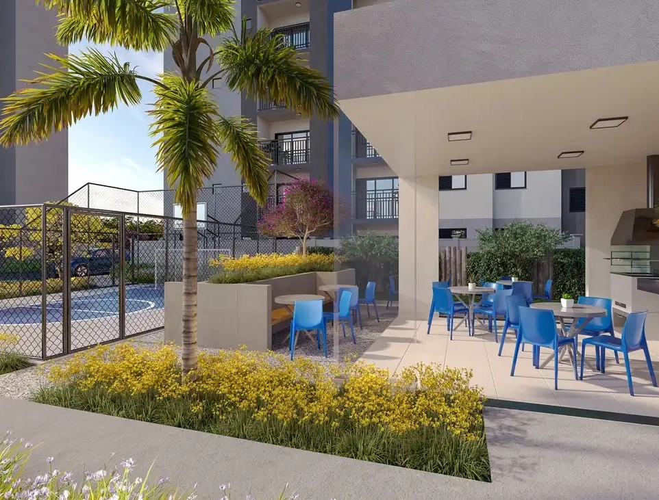 A área de lazer integra piscina adulto e infantil, rooftop com salão de festas e terraço panorâmico, espaço churrasco com garden, garrafão de esportes e quadra de areia. Esses ambientes ampliam as opções de uso do condomínio no dia a dia.