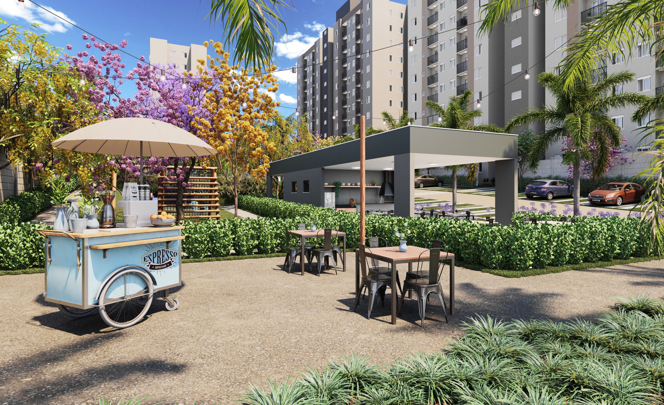 Conheça seu novo apê em Jaguariúna, o Aura Residencial! São apês 2 dorms com varanda e uma área de lazer que mais parece um clube. Tem quadra de areia, piscina com raia, pista de caminhada e muito mais.