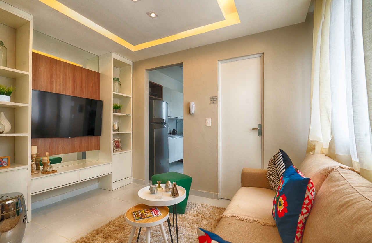 O condomínio possui casas duplex de 2 quartos e casas térreas acessíveis de 2 quartos.
