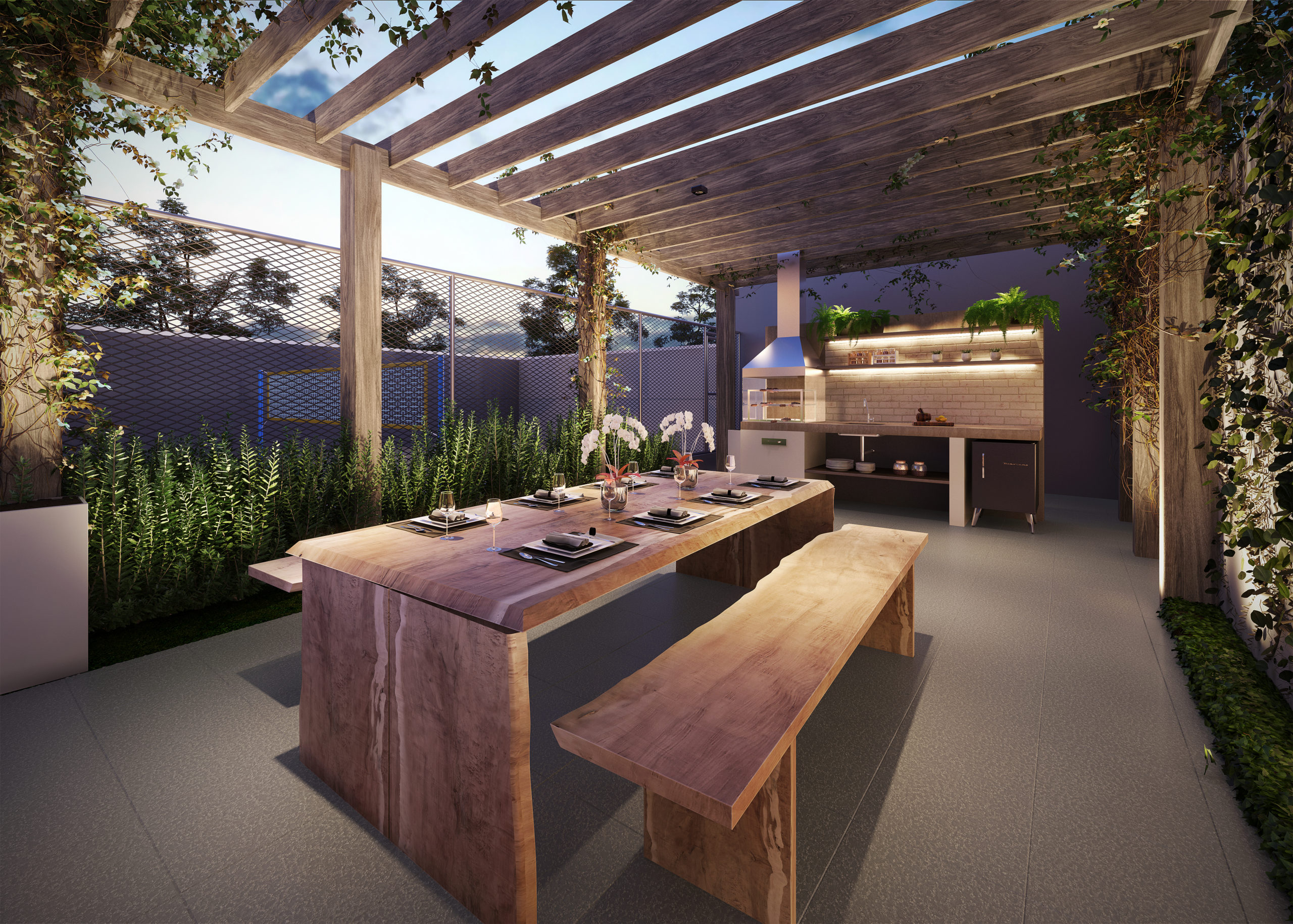 Torre única com 123 unidades e fachada ativa. Alvenaria estrutural, possibilitando remoção de paredes e adaptação de layout. Unidades entregues com infra para instalação de equipamento de Ar-condicionado, fechadura eletrônica, tomada USB nas unidades privativas, persiana de enrolar, Churrasqueira ecológica. Áreas Comuns equipadas e decoradas.