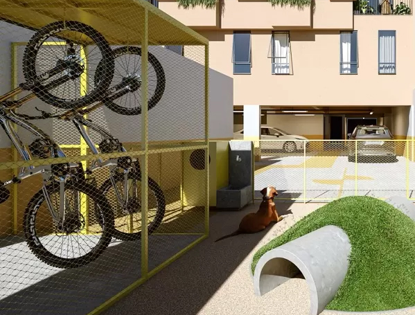 Com apartamentos projetados para maximizar a sensação de espaço, é perfeito para a vida moderna em ambientes compactos. O condomínio ainda oferece comodidades exclusivas, incluindo um cachorródromo, bicicletaria, ferramentaria, lavanderia e um mercado interno, garantindo conveniência aos moradores.