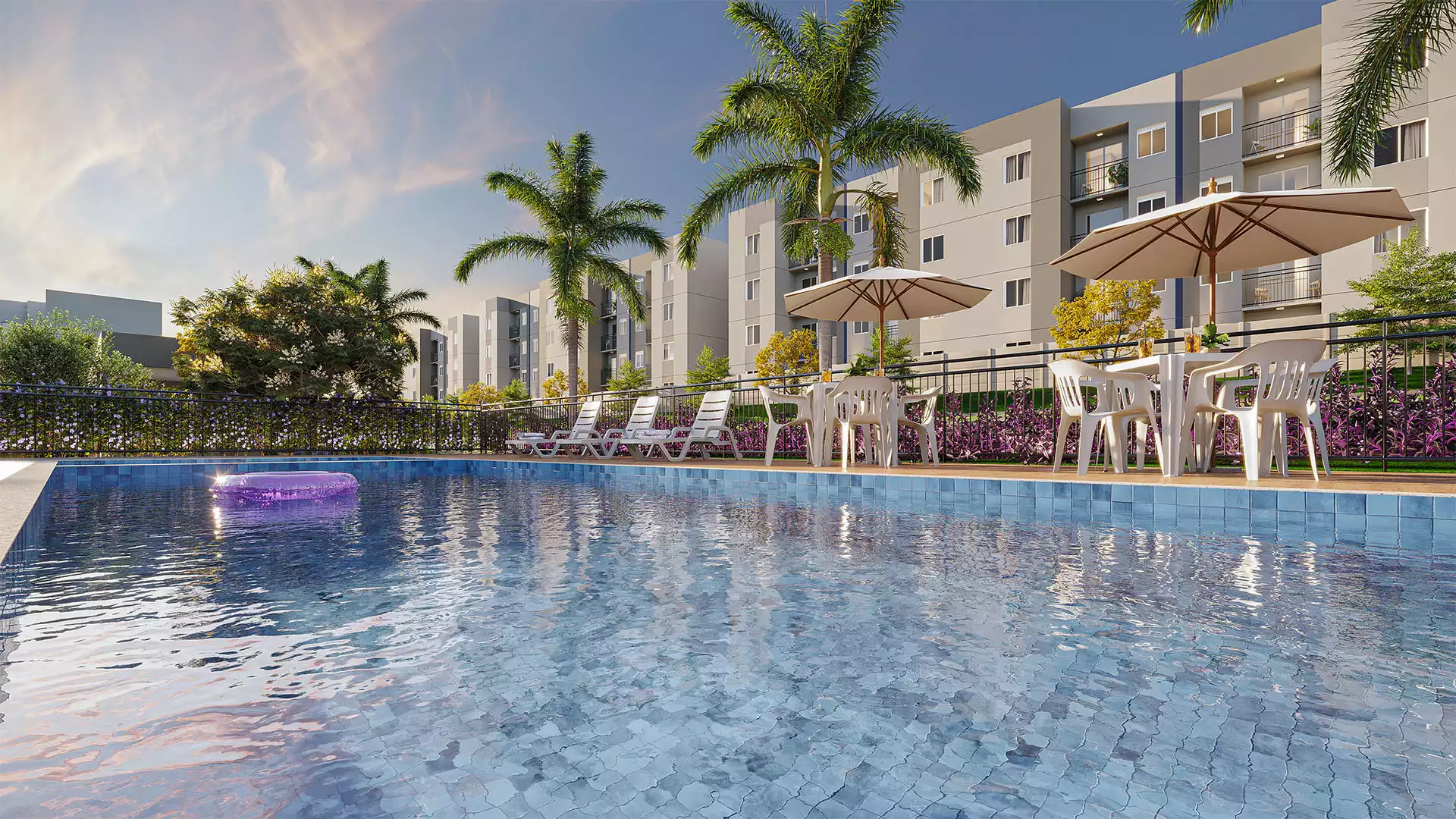 Lazer de clube rodeado de muita qualidade de vida, conheça o Orion Residencial. Aqui, seu futuro apê tem 2 dormitórios e + de 15 itens de lazer para você aproveitar! É do tipo fitness? Então o Longifit e a pista de caminhada são para você. Prefere curtir seu tempo livre relaxando? Então o Espaço Churras e a Piscina com raia são as escolhas da vez! E aí, já escolheu o seu favorito?