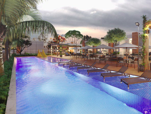 O projeto é composto por casas de dois pavimentos, com opções de plantas de 3 quartos, sendo 2 suítes, e plantas de 4 quartos, incluindo suíte master com closet e varanda. Todas as unidades contam com sala de estar e jantar integradas, cozinha, área de serviço e espaço para duas vagas. Além da área privativa interna, cada residência possui espaço externo exclusivo, com possibilidade de aquisição do Kit Lazer, composto por deck em porcelanato amadeirado, piscina, churrasqueira e bancada — ideal para quem busca um ambiente complementar de convivência.